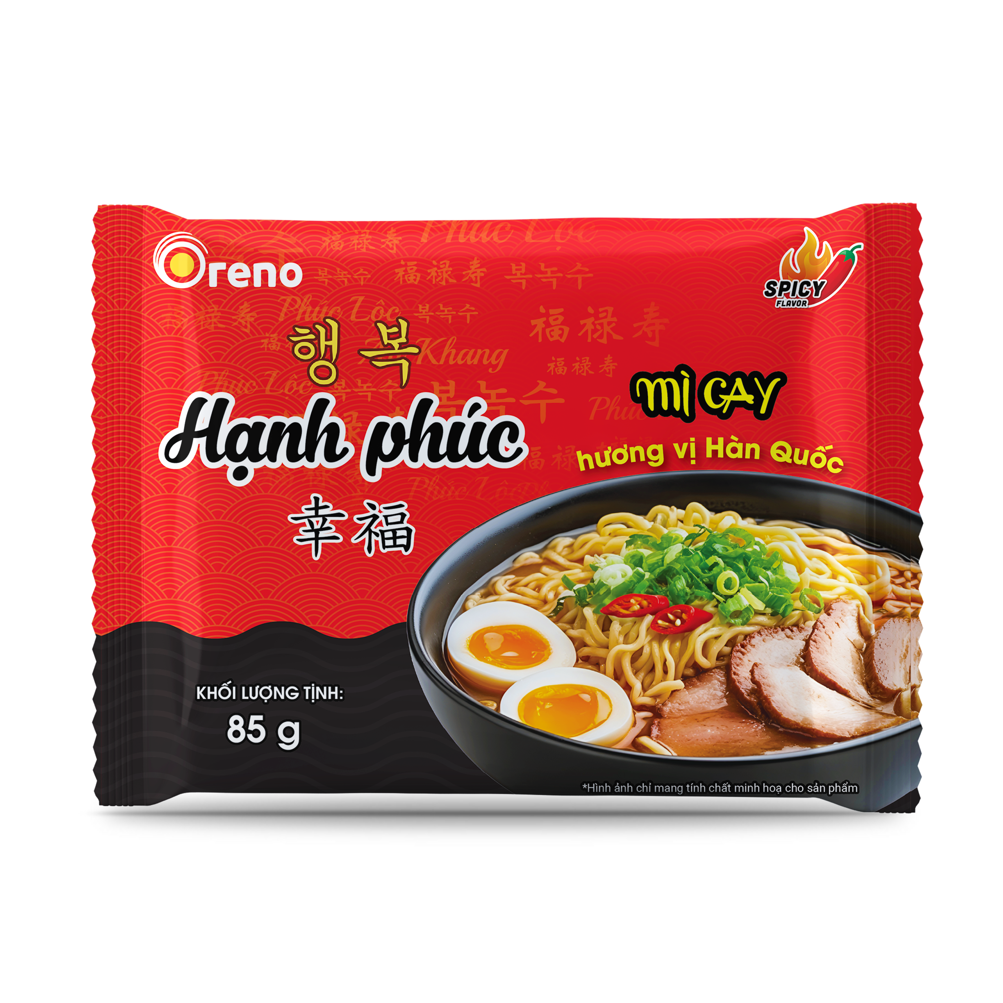 Mì Oreno – Hạnh Phúc là sản phẩm mì ăn liền mang phong cách Hàn Quốc, nổi bật với sợi mì dai ngon chuẩn vị và nước súp cay thơm đậm đà. Sản phẩm được thiết kế nhằm đem đến trải nghiệm ẩm thực vừa tiện lợi, vừa trọn đầy hương vị.